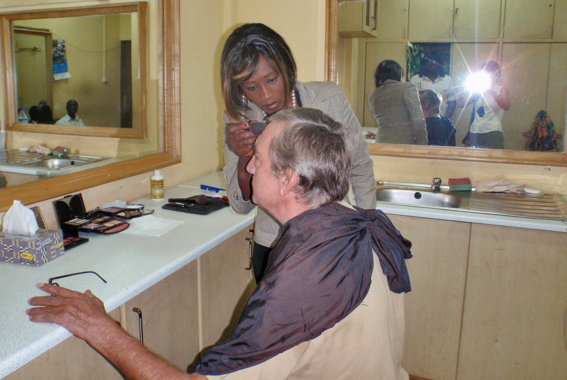 GHANA 63 (ACCRA, NUESTRA INTEVIU EN LA TELEVISION TV3 DE GHANA) SESION DE MAQUILLAJE ANTES DE SALIR AL PLATO