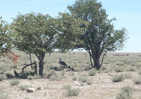 NAMIBIA ETOSHA, CRESTA ROJA AVE INCANSABLE CORREDORA DE LA SAVANA (ROTSCHOPFTRAPPE)