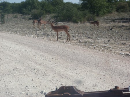 NAMIBIA ETOSHA, IMPALAS AL LADO DE LA PISTA (SCHWARZGESICHT)