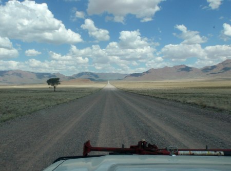 NAMIBIA SUR-OESTE, HACIA LUDERITZ, LAS PISTAS SON MUY RECTAS Y PUEDES HACER 300 KM. SIN VER A NADIE