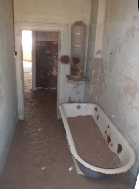 NAMIBIA SUR-OESTE, KOLMANNSKUPPE, CUANDO SE CONSTRUYO ESTA CIUDAD, UN CUARTO DE BAÑO COMO ESTE EN EL DESIERTO ERA UN LUJO INAUDITO