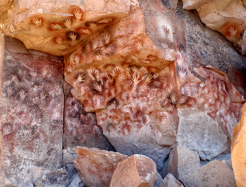 ARGENTINA 120. CUEVA DE LAS MANOS, TODAS LAS PINTURAS NO SON DE LA MISMA EPOCA SE ETALAN A LO LARGO DE 3.000 ANÌOS