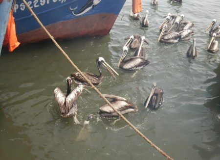 PERU 84. (PENINSULA DE PARACAS) LOS MARINEROS DE LAGUNILLAS DICEN QUE LOS PELICANOS TIENEN TANTA COMIDA EN EL PUERTO QUE YA NO SABEN PESCAR