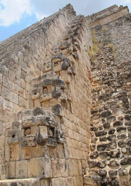 MEJICO 63 ( UXMAL, OTRA JOYA MAYA ) PARTE TRASERA DE LA «PIRAMIDE DE LOS ADIVINOS». DETALLE DE LAS ESCALINATAS CON MASCARONES DE «CHAAC » EL DIOS DE LA LLUVIA