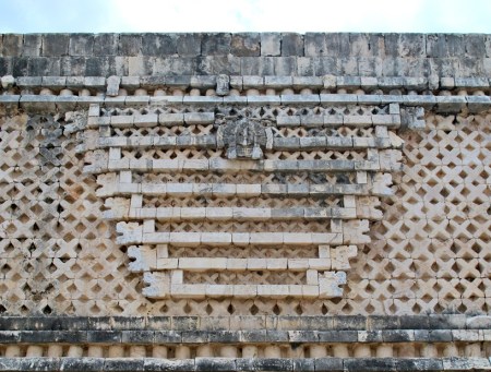 MEJICO «UXMAL, OTRA JOYA MAYA» » MEJICO 66 ( UXMAL, OTRA JOYA MAYA ) «CUADRADO DE LAS MONJAS», DETALLES DE LA DECORACION DEL PALACIO DE LOS «ENRREJADOS», SERPIENTES BICEFALAS EN PARALELO Y LA CABEZA DEL DIOS TIALOLOC