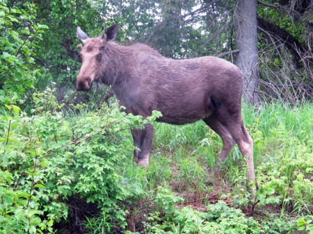 ALASKA 104 {EN CAMINO HACIA VALDEZ) LOS ALCES PESAN DE 350 A 450 KG, ALTURA DE 1,50 A 2,15 M, LAS ASTAS DE LOS MACHOS LLEGAN A MEDIR 3,5M
