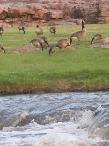 USA 2°-38 (DAKOTA DEL SUR) SIOUX FALLS, INCREIBLE LA CANTIDAD DE GANSOS QUE HAY ALREDEDOR DE LAS CASCADAS