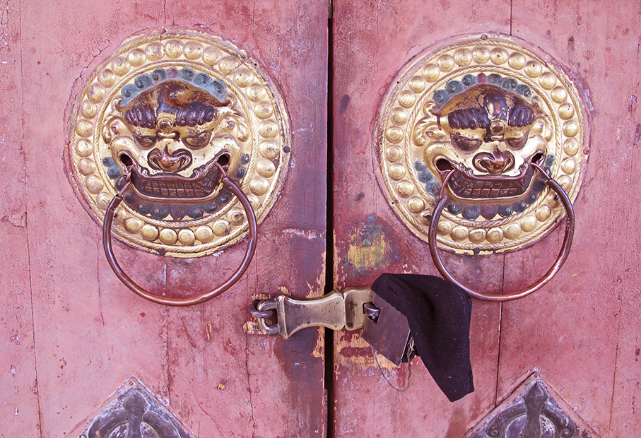 MONGOLIA 315 (KARAKORUM-EL MONASTERIO DE ERDENE ZUU) EL TEMPLO DEL DALAI LAMA, POMOS DE LA ENTRADA PRINCIPAL