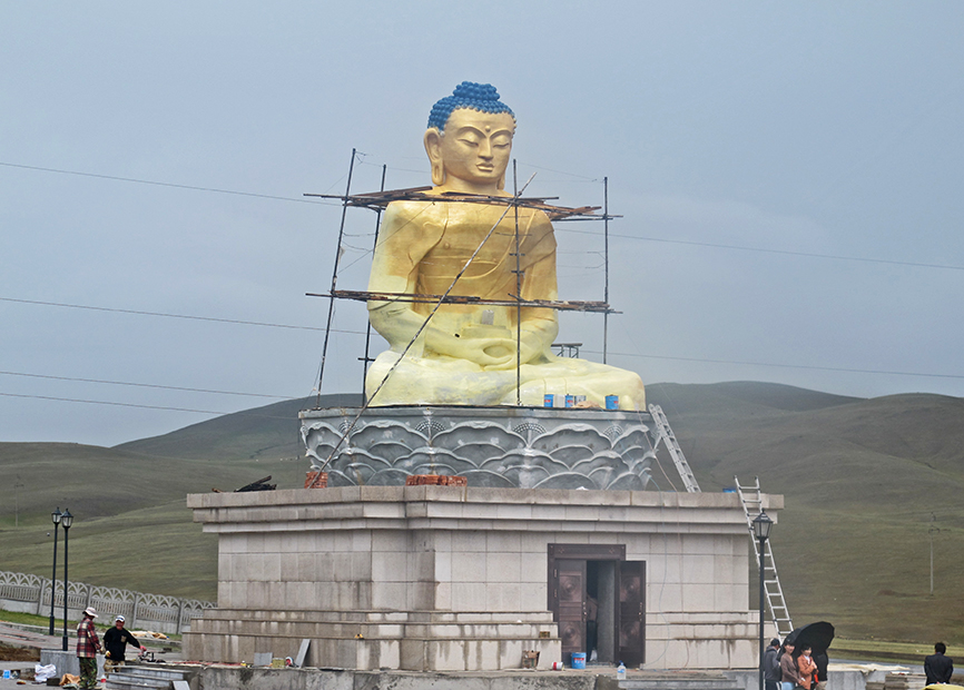 MONGOLIA 435 (HACIA EL NORTE) UN PEQUEÑO TEMPLO EN NUESTRO CAMINO, REPARANDO UN BUDA