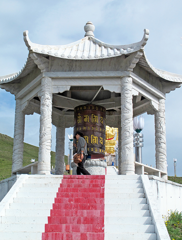 MONGOLIA 504 (EL MONASTERIO DE AMARBAYASGALANT) MAS ARRIBA GIRANDO UN MOLINO DE ORACIONES