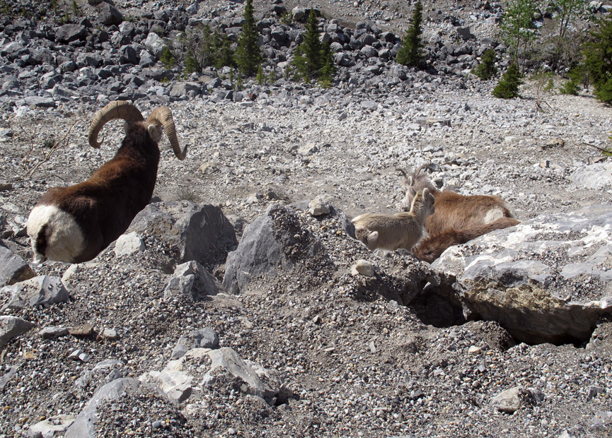 CANADA 64 (YUKON 1º) «ALASKA HIGHWAY» WATSON LAKE, UN GRUPO DE MUFLONES A POCOS KILOMETROS DE LA POBLACION